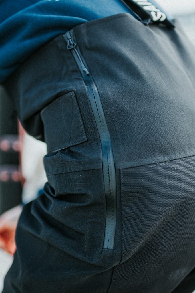 Abertura delantera que permite el uso de un dispositivo para orinar de pie. Sistema de cierres traseros diseñado para soltarse con una sola mano, sin quitarse el chaquetón ni el chaleco.