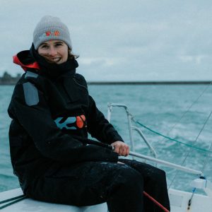 La salopette, testata in regata d’altura, completa la tenuta grazie al suo tessuto traspirante, leggero e resistente all’abrasione.