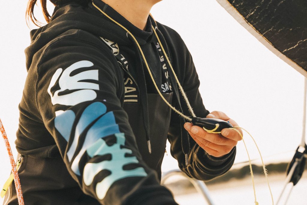 Sweat noir 80% coton biologique. Motifs exclusifs Sailiz Transferts réalisés…