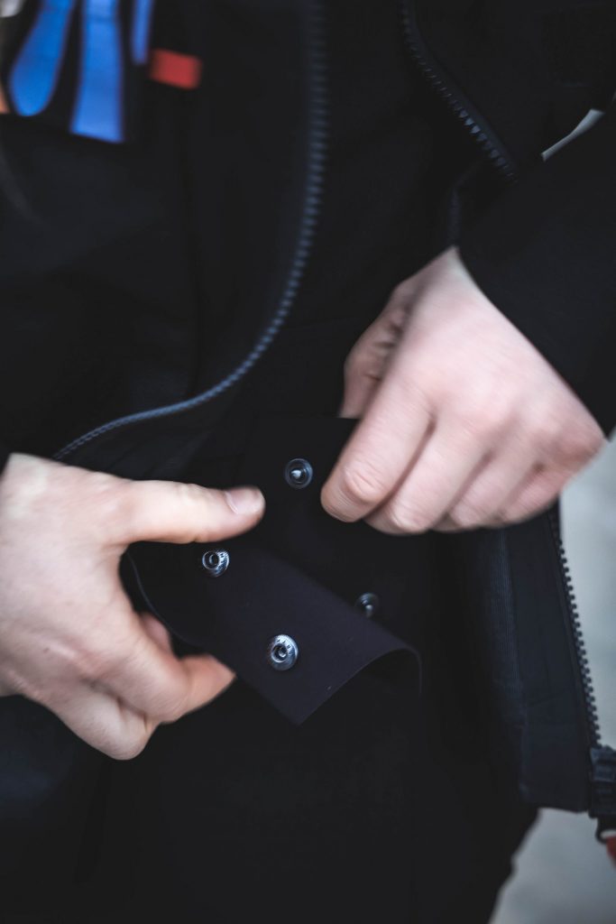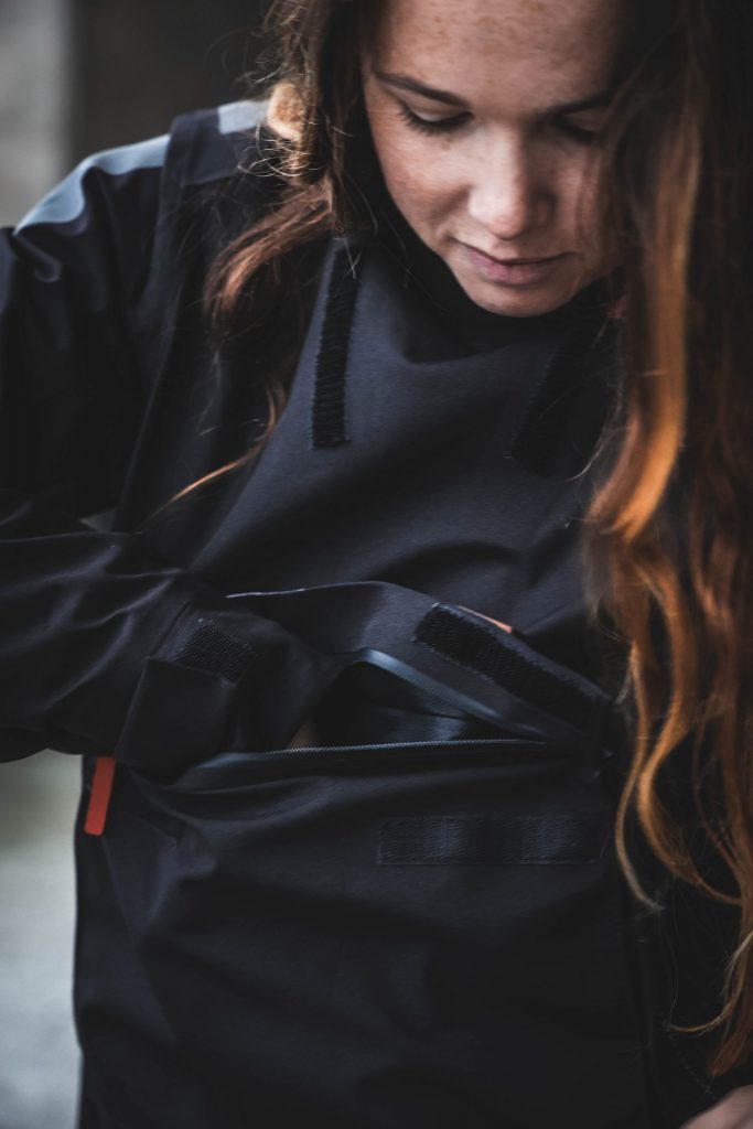 Fermeture frontale YKK® AquaGuard : zip étanche avec double rabat tempête.