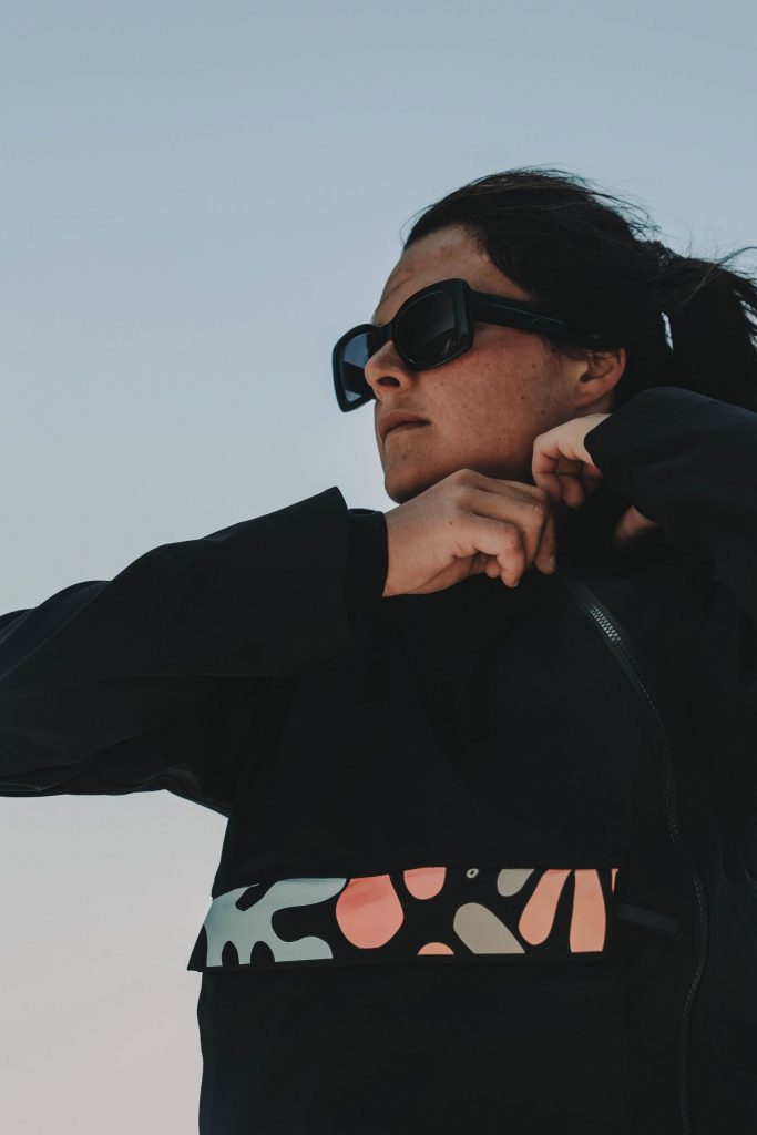 Manchons et sous col en néoprène sous les poignets ajustables pour éviter les entrées d’eau.